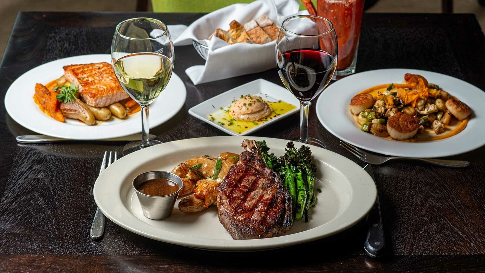 filet mignon, jumbo shrimp, roasted red pepper, pickled cherry, crumbled gorgonzola, charred onion vinaigrette